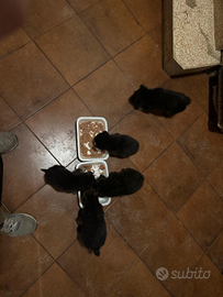 Cuccioli di mamma pastore tedesco e il papà incrocio con il Terranova sono 5 cuccioli 2 femmine sono e 3 maschi hanno quasi 2 mesi c'è da sverminarli e vaccinarli.