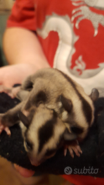 Disponibili 2 cuccioli di petauro dello zucchero allevati a mano, molto dolci e carini, dieta semplice con frutta e verdura fresca e alcuni insetti. Si fanno prendere e accarezzare senza problemi, saranno svezzati per metà/fine marzo 2026. Sono bestiole che prediligono la vita in coppia o colonia, soffrono la solitudine. Se presi in coppia pratico sconto. 120€ cad