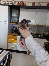 Disponibili mini cuccioli di pinscher nano . urna miniatura da borse.un maschio e una femmina. Due mesi. Verranno consegnati con doppio vermifugo e antiparassitario effettuati. Abituati alla traversa. Rispondo solo telefonicamente 3208449822 prezzo 250 cadauno