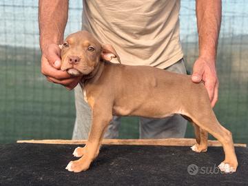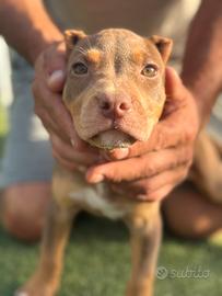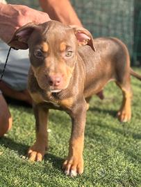 Ultime due femmine di American pitbull terrier color cioccolato tricolor, nate il 22/08, papà Gr. Ch. MCKCI, verranno cedute dopo il 60esimo giorno dal 23/10 con ciclo di sverminazione ciclo vaccinale pedegree.