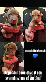 Si vendono cuccioli stupendi di APT perfetti in salute, no displasia chiusura dentatura Perfetta, visibili entrambi i genitori disponibili dal 10 Gennaio con primo vaccino e due cicli di sverminazione.