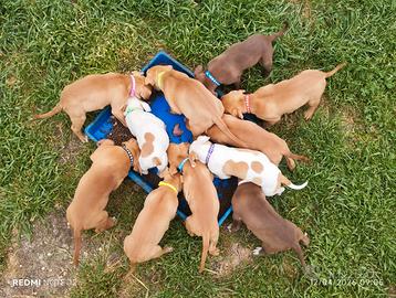 Cuccioli di Pitbull Red nose nati il 20 febbraio 6 maschi 1 femmina Chiedo rimborso spese 300? Si cedono dopo i 2 mesi ciclo vermifugo completo Disponibile Vaccino e microchip su richiesta dopo i 2 mesi. Allevo questi cani a livello amatoriale da 10 anni, selezionati per morfologia e carattere. I cuccioli sono già socializzati con cani più grandi ed altri animali e con le persone. Per altre foto e informazioni contattare tramite whatsapp 3248620401