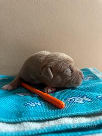 Disponibili bellissimi cuccioli di American Pitbull terrier con pedigree MCKCI in standard Ukc. Sono nati il 26/02 saranno consegnati a 60g il 26/04. Verrano consegnati completi di microchip vaccino libretto sanitario sverminaizioni e pedigree che attesta il cane di razza. Per maggiori informazioni scrivere al seguente numero di cellulare 3517744378. NON SONO IN REGALO.