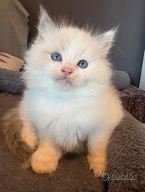 Disponibili splendidi cuccioli di Ragdoll, prenotabili fin da ora e pronti per raggiungere la nuova famiglia a partire da metà maggio. I cuccioli crescono con amore in ambiente familiare, a stretto contatto con le persone. Si distinguono per il loro carattere dolce, tranquillo e molto affettuoso, tipico della razza. Saranno ceduti con: libretto sanitario vaccinazioni complete sverminazione microchip pedigree kit di benvenuto Genitori testati per le principali malattie genetiche della razza. Per maggiori informazioni o per fissare un appuntamento non esitate a contattarci.