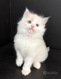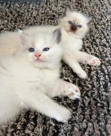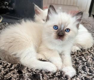 Allevamento amatoriale con affisso, riconosciuto WCF/AGI, propone cuccioli di Ragdoll da compagnia, cresciuti in casa e abituati alla presenza delle persone e alla vita domestica. I gattini sono affettuosi, dolci, giocherelloni e molto amorevoli, con pelo morbido e setoso e dal carattere tranquillo, perfetti anche per famiglie con bambini o per chi cerca un gatto particolarmente affettuoso, tipico della razza Ragdoll. I cuccioli verranno ceduti con: o Libretto sanitario o Ciclo vaccinale completo o Sverminazione completa o Microchip o Pedigree o Contratto di cessione o Kit di benvenuto I genitori sono testati per le principali malattie genetiche. Per maggiori informazioni o foto, non esitate a contattarci.