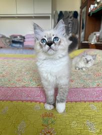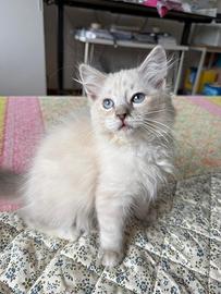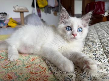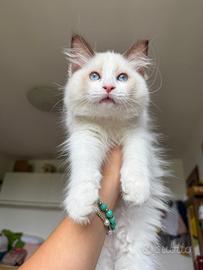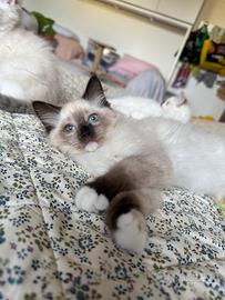Allevamento amatoriale di dolcissimi gatti Ragdoll, iscritto alle associazioni feline, dotato di affisso. Tutti i nostri riproduttori sono testati per le principali malattie genetiche (HCM-PKD), per quelle infettive (FIV-FELV) e annualmente visitati dal veterinario che ne attesta la buona salute. I cuccioli sono allevati e cresciuti in casa in un ambiente familiare ricco d'amore e di attenzioni, selezioniamo anche cuccioli adatti a Pet Therapy. I cuccioli vengono ceduti al compimento dei tre mesi di età dopo aver conseguito le due vaccinazioni trivalenti, essere stati sverminati e visitati dal veterinario che ne attesta la buona salute e dopo aver ricevuto tantissime coccole! I cuccioli quando vengono ceduti sono autonomi; abituati alla lettiera, al tiragraffi, a mangiare umido e crocchette, ad essere spazzolati, lavati e a tagliare le unghiette e prontissimi a riempire di gioia le vostre giornate ;)