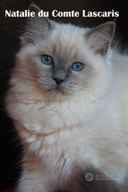 Disponibili dal 14 marzo, presso allevamento amatoriale "du Comte Lascaris" a Sanremo tre stupendi cuccioli di 3 mesi di razza RAGDOLL (avranno pedigree ANFI) Sono nati il 27 novembre 2025 e saranno ceduti dopo aver compiuto tre mesi. Da grandi saranno belli come mamma GENESIS (champion WCF) e papà HIBI (World champion WCF) tutte le info con Whatsapp al numero 3392090927 NENA. E' anche possibile vederli dal vivo in videochiamata... (i nostri gatti sono di razza RAGDOLL diversi dai MAINE COON, dai PERSIANI, dai SACRI DI BIRMANIA. Non alleviamo altre razze)