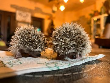 Disponibili piccoli di riccio africano nella colorazione pezzata e bianco albino, i piccoli sono svezzati e possono raggiungere le nuove famiglie!! Sono abituati al contatto e sono molto socievoli! Per informazioni e foto dettagliate non esitate a contattarmi!