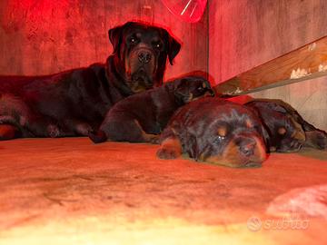 Cuccioli di Rottweiler nati il 29/10/2025 . Figli di Morpheus e Xina dell'Antico Guerriero . Alta genealogia bellissimi . Con Chip Pedigree sverminati e prima vaccinazione . Disponibili da subito a Roma