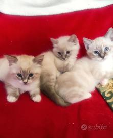 stupendi cuccioli nati il 26 settembre due femminuccie ed un maschietto di sacro di birmania pronti alla lettiera sono disponbili. per informazioni conttare tramite whatup la signora tatiana