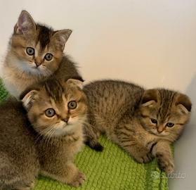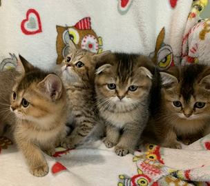 Sono disponibili cuccioli scottish fold e straight molto belli e coccoloni , gattini sono nati 17 marzo sono gia autonomi, svezzati abituati al uso dalla lettiera e tiragraffi, trattamento antiparassitario, visita veterinaria, v'erano ceduti con libretto sanitario e primo vaccino. Mamma con noi in casa, genitori testati Fiv/Felv negativo,