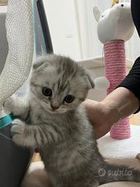 Disponibile un maschietto scottish fold, dolcissimo e amorevole nato il 17 marzo in ambiente familiare. Abituato alla lettiera e a usare i tiragraffi. Verrà ceduto con il primo vaccino, sverminazione, antiparassitario esterno, libretto sanitario. Entrambi genitori vaccinati e testati Fiv e Felv negativi. Per maggiori informazioni contattatemi 3533118069