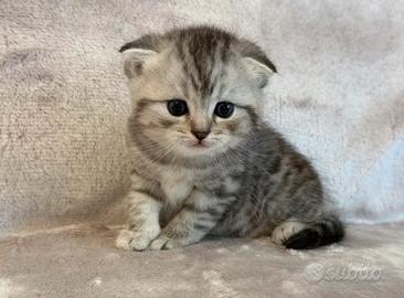 Scottish Fold e Straight - Cuccioli Disponibili Siamo lieti di presentarvi dei meravigliosi cuccioli Scottish Fold e Scottish Straight, nati il 9 marzo. Questi adorabili gattini sono non solo bellissimi, ma anche estremamente affettuosi e coccolosi. Amano giocare, dormire e sono gia abituati all'uso della lettiera. Disponibilita: Maschi e femmine! I cuccioli verranno ceduti svezzati, sverminati e pertettamente socializzati al raggiungimento dei 2 mesi. Salute garantita: Genitori testati negativi per FIV e FeLV. I cuccioli sono anche testati per giardia, per garantire la massima tranquillita per la loro salute. Per ulteriori informazioni o per fissare una visita, non esitate a contattarmi privatamente su WhatsApp al numero 3669898841