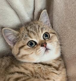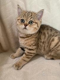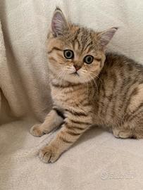 È disponibile una dolcissima cucciola scottish straight color tigrato , è nata 9 ottobre ,gattina è svezzata sverminata abituata al uso della lettiera e tira graffi con primo vaccino e libretto sanitario .Genitori testati FIV/FELV negativo. Mamma con noi in casa.