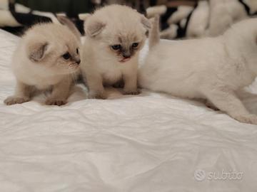 Dal 10 maggio saranno disponibili tre bellissimi e dolcissimi cuccioli scottish, due maschietti ed una femminuccia....due saranno fold. I cuccioli saranno ceduti con sverminazione, primo vaccino, libretto sanitario e certificato di buona salute loro e dei genitori, entrambi scottish di nostra proprietà. Contattatemi per qualsiasi informazione.