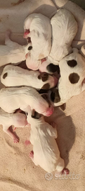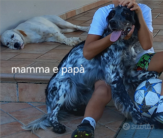 da mamma setter bianca e nera e papà setter bianco arancio , venduti con libretto sanitario e prime vaccinazioni già eseguite . Mamma e papà visionabili . Papà con pedigree mamma senza pedigree