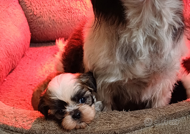 Dolcissimi cuccioli di Shitzu pronti per entrare nelle nuove famiglie. Vi sono due femmine e un maschio ancora disponibili. I cuccioli hanno 65gg e li consegno con vaccinazioni sverminazioni microchip inserito iscrizione all anagrafe canina libretto sanitario passaggio di proprietà garanzia sanitaria scritta e antiparassitario esterno. Genitori visibili di ottimo carattere e morfologia taglia piccola. Prezzo molto interessante. Preferibile contatto telefonico o whatsapp 3483933084.