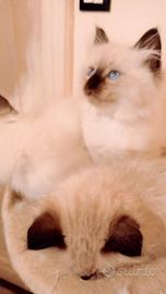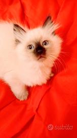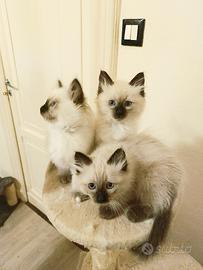 Cuccioli incrocio siamese Thai pelo lungo (balinese) e sacro di Birmania. Disponibili due maschietti e due femminucce nati il 22 novembre. Sono gatti da appartamento intelligenti e giocherelloni abituati alla lettiera e al tiragraffi. Saranno ceduti privatamente con doppia sverminazione eseguita. Solo veri amanti degli animali no perditempo.
