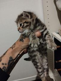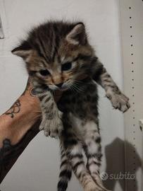 4 splendidi cucciolini di mamma Bengala e papà Siberiano nati il 22 Marzo dolcissimi e giocosi i micini sono ipoallergenici e saranno pronti per lasciare la casa natale dal 1 Giugno accompagnati dal loro librettino con visita veterinaria effettuata profilassi antiparassitaria e test genetici genitori negativi! Per altre info o foto contattatemi al 3391958069