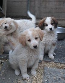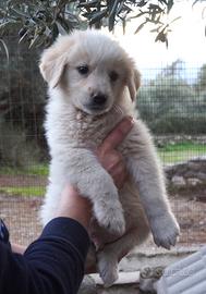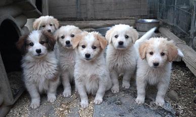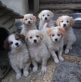 Questi bellissimi sei cuccioli futura taglia media, hanno 2 mesi e sono: 2 femmine (di cui rimane disponibile 1 dal mantello tutto color miele) e 4 maschi (di cui 3 dal mantello bianco/miele e 1 dal mantello bianco-marrone scuro). Hanno un ottimo carattere, sono buoni e socievoli con tutti, anche con gli altri cani e con i gatti