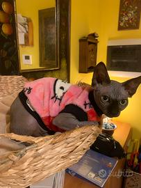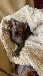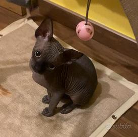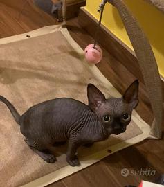 Disponibili cuccioli di sphynx, maschietti e femminucce colore nero. Già abituati a lettiera, tiragraffi e ben socializzati. I cuccioli saranno ceduti con pedigree, sverminazione, vaccinazioni, libretto sanitario, esami fiv felv e hcm negativi dei genitori.