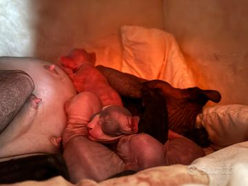 Sono Disponibili alla Prenotazione, 4 Cuccioli di ( Sphynx ELF ) Nati 1 Aprile 2026 Saranno pronti per raggiungere le Nuove Famiglie, verso la fine di Giugno. Al compimento dei 90 giorni. Possibilità di Consegna in tutta Italia. Entrambi i Genitori sono Testati Negativi a Filv, Felv , HCM. I Gattini saranno Consegnati completi Di Libretto Sanitario Sverminazione Completa Prima Vaccinazione Certificazione di Buona Salute rilasciata dal Veterinario E CIP inserito. Per maggiori informazioni al riguardo potete contattarci al 3756139920 Francesco/Annachiara Possibilità di Rateizzazione, sino ad una tempistica, del compimento dei 90 giorni di età dei piccolini, per l'avvenuta consegna, di ogniuno di voi. Per quanto Riguarda Morph Tipologia e Sessi. Non ci sarà nessuna differenza di prezzo, visto sono Esemplari Di selezione, soprattutto non Consanguinei. Con Genitori di ottima provenienza. Per chi non può venirci a trovare Personalmente a casa, per una scelta più dettagliata. Si potrà tranquillamente effettuare una videochiamata se non vi basteranno video e foto. (Possibilità di Trasporti Autorizzati Asl per tutta l'Italia) Grazie mille.