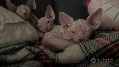 Disponibili cuccioli di Sphynx 2 maschi e 1 femmina. I cuccioli saranno ceduti con microchip 2 vaccinazioni e pedigree disponibili su prenotazioni e pronti per la loro nuova famiglia dal 22 maggio. I