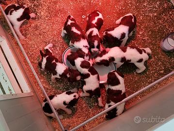 Disponibili un maschio ed una femmina di springer spaniel inglese da linee di sangue da caccia italiane da diverse generazioni. Nascita 22 marzo 2026 con consegna dopo il 22 maggio 2026. Cani da caccia venatici ed equilibrati,soggetti che hanno avuto ottimi riscontri in ambito di ricerca tartufo e ricerca di superficie di dispersi a causa di gravi calamità naturali. Cane pertetto anche per la vita familiare a patto che siate persone dinamiche e che facciano attività all'aperto. I cuccioli verranno consegnati al compimento del sessantesimo giorno di vita come da normativa vigente con: Microchip Vaccino Certificato di caudotomia neonatale preventiva (come previsto dalla legge) Sverminazioni multiple Iscrizione asl Iscrizione Enci (pedigree di razza) Sacco di crocchette da 20 kg con cui proseguire lo svezzamento. Percorso di socializzazione con altri cani,con i rumori,con persone e bambini. Tutti i soggetti adulti hanno il Dna depositato in banca dati ENCI . Qualora si volessero dei test particolari prima dell'acquisto non ci saranno problemi ma saranno eseguiti completamente a carico dell'acquirente. Prezzo 800€ NESSUNA TRATTATIVA NESSUNA SPEDIZIONE