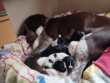 Cuccioli amorosi e dolcissimi iniziano a cercare casa , madre meticcia drahthaar padre ignoto futura taglia medio grande/grande , 2 maschi e 2 femmina, bianchi e neri a macchie 2 maschie e 2 femmine neri 2 femmine bianche 1 maschio marrone Saranno affidati a 2 mesi e mezzo 3 , Per info scrivere in privato su Messanger