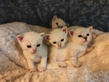 Presso l'allevamento amatoriale "Lo Zaffiro" sono nati 4 meravigliosi gattini thai, 3 femmine ed 1 maschietto , non sono della colorazione classica bensì seal tabby point e nella più rara seal golden tabby point. I nostri cuccioli crescono in famiglia e sono abituati agli altri gatti, ai cani, ai bambini, quindi molto socievoli. I cuccioli saranno pronti per entrare nelle nuove famiglie verso fine novembre quando avranno compiuto 3 mesi. I cuccioli verranno consegnati con esami feci negative (anche giardia), 2 vaccini, il microchip applicato ed esami fiv e Felv, ecocardiogramma ed eco addominale dei genitori. I cuccioli verranno ceduti da compagnia con contratto.
