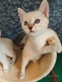 Presso l'allevamento amatoriale Lo Zaffiro sono prenotabili ancora due cuccioli Thai: Totò, maschietto nella rara varietà di colore seal golden tabby point e Tundra nella varietà seal tabby point. I cuccioli potranno entrare nelle nuove famiglie verso la fine di novembre quando avranno compiuto 3 mesi, saranno consegnati completamente vaccinati, esami delle feci negative (anche giardia), chip applicato, esami fiv e felv ed ecocardio dei genitori, pedigree. I cuccioli saranno ceduti con contratto da compagnia