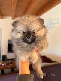 Disponibili dopo il compimento dei due mesi cuccioli di spitz/volpino di Pomerania linea americana. Sono di una bellezza e dolcezza incredibili, con un musetto molto corto. I genitori sono visibili in loco, molto molto pelosi e sani. La mamma pesa due chili e mezzo, il papà 2, quindi la taglia dei cuccioli sarà piccola. Sono nati e cresciuti in casa, abituati ai tappetini igienici e saranno consegnati svemintati, vaccinati, con microchip, test feci e prima visita veterinaria generale che ne attesta la salute. Molto vispi e simpatici. Prezzo dai 1000 ai 1200 in base ai soggetti