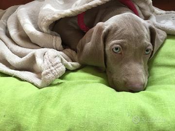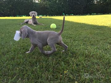 Disponibili ultimi due cuccioli di weimaraner dal manto grigio argento e occhi azzurri di due mesi in pronta consegna.. verranno ceduti sverminati, vaccinati, con microchip, iscrizione anagrafica canina, libretto sanitario, pedigree ENCI e puppy kit.
