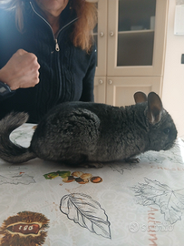 Disponibile subito cucciolina femmina di cincillà nata il 30 novembre 2025, mamma ebano dark omozigote papà mosaico. Pronta per una nuova famiglia