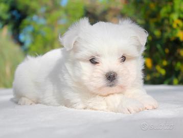 Perry (nome indicativo) è questa dolcissima cucciola femmina di Maltese di 2 mesi di età, nata nel nostro allevamento e pronta a trovare una nuova famiglia. Con il manto bianco soffice e il carattere affettuoso, è la compagna ideale per coccole e giochi. Sempre curiosa e vivace, riempirà la vostra casa di gioia e tenerezza.