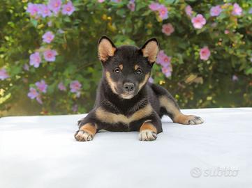 Questa splendida cucciola di Shiba Inu si chiama Miriel (nome indicativo). Femminuccia di 2 mesi di età, Miriel è un concentrato di energia e dolcezza. Il suo manto nero focato e il suo sguardo intelligente la rendono irresistibile. Sempre pronta a giocare e a ricevere coccole, Miriel saprà come conquistare il cuore di chiunque con la sua vivacità e affetto.