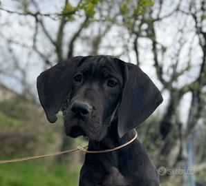 Cucciolo di alano di due mesi e mezzo disponibile da subito. Provvisto di pedigree ENCI, libretto sanitario, vaccinazioni, microchip, certificato di buona salute. Genitori testati patologie di razza ( displasie anche e gomiti e cuore)