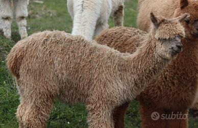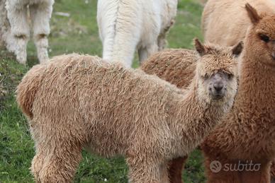 L'allevamento Alpaca e Nuvole vende cucciolo (cria) maschio nato a luglio. Colore ligth fawn razza SURI Indole buona, riflessivo, abituato all'umano e alle manovre sanitarie. Con microchip. Sverminato / vaccinato. Con l'acquisto è possibile accedere GRATUITAMENTE al corso per la gestione e la cura dell'alpaca della durata di una giornata. NB: non rispondiamo a chiamate di numeri privati. Si preferisce un primo contatto mail.