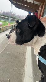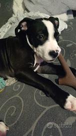 splendido cucciolo Amstaff di 5 mesi giocherellone abituato a bambini e altri animali ottima morfologia,abituato a sporcare fuori o su traversina. Addestramento base