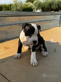 Allevamento amatoriale di American Staffordshire terrier mette a disposizione cuccioli di alta genealogia nati il 5 maggio. Tutti i nostri cuccioli provengono da genitori che sono stati attentamente selezionati per la riproduzione e verranno consegnati dopo i 70 giorni con microchip (iscrizione anagrate canina), ciclo completo di vermifugo, primo vaccino, pedigree ENCI FCI e libretto sanitario rilasciato dal veterinario. Nella penultima foto si puó visionare il padre e nell'ultima la madre, entrambi di mia proprietà e visionabili di persona. I locali in cui vivono sono ambienti sani in quanto vengono sanificati giornalmente. I nostri cani hanno un temperamento equilibrato e tranquillo perché i genitori vengono selezionati per carattere e mortologia. I cuccioli si trovano in Sicilia e verranno ceduti solo ad amatori della razza e persone che se ne sappiano occupare. Per qualsiasi informazione o domanda potete contattarmi qui sulla chat di subito o ancora meglio tramite chiamata telefonica al 3802872735