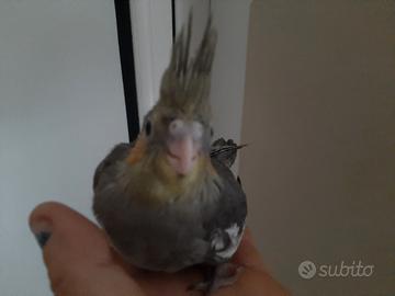 disponibile bellissimo esemplare di pappagallo calopsite pronto per essere imboccato a mano. di 22 gg.anellato ed in perfetta salute , disponibili anche pulletti da imbecco più piccoli