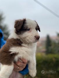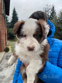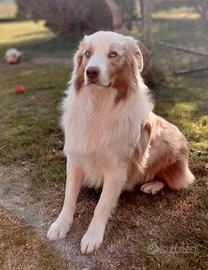 Femmina red tricolor di pastore australiano nata il 6/11 ( disponibile dopo Epifania) mamma red tricolor, papà red merle ( no pedigree). Si consegna sverminata, con chip e con vaccinazione.