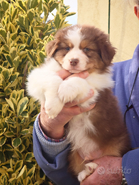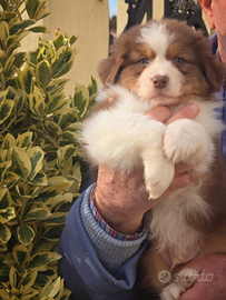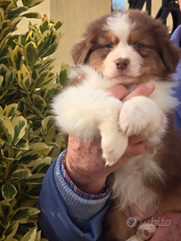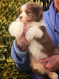 Disponibile alla prenotazione splendido cucciolo maschio rosso tricolore coda corta naturale di pastore australiano con pedigree enci/fci.