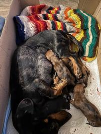 Disponibili alla prenotazione ciccioli di bassotto arlecchino brown silver e nero forato . Verrano ceduti dopo i 60 giorni con microchip, vaccino e svermati. I genitori sono visibili .