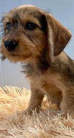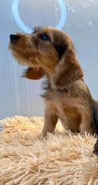 Serio e amante della razza di bassotto a pelo duro ( o forte o ruvido ) disponibile di un cucciolo di color foglia secca arlecchino