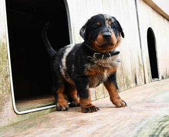 Cucciolo di cane da Pastore di Beauce (Beauceron, antica razza francese) maschio arlecchino "collare nero" disponibile nato il 4 Gennaio 2026; genitori selezionati a livello morfologico e caratteriale, visibili presso di noi : Kiley Argentée des Gardiens de Rome HD A / ED 0 x CH. LEON des Gardiens de Rome HD A / ED 0 CAMPIONE ITALIANO RIPRODUTTORE
