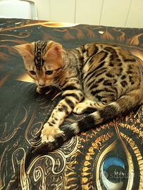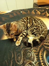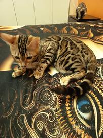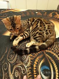 Cedesi cucciolo di gatto bengala femmina di 6 mesi molto affettuosa perche nata in casa con disegni del manto molto belli verrà ceduta sverminati vaccinata microchip e pedigree da compagnia
