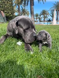 Ultima femmina rimasta di cucciolo di cane, corso nata il 28 febbraio 2026 da padre grigio con pedigree e madre tigrata senza pedigree. La cucciola è pronta per per essere adottata ha un bel carattere Allegra e giocherellona. Contattami solo se sei realmente interessato cane di taglia grande, necessita di casa con giardino