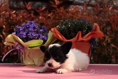 Disponibile cucciolo di epagnuel nano continentale PAPILLON. Peso da adulto 2.5-4.5kg. Genitori con pedigree ENCI, visibili. Verrà consegnato a 70 gg incirca con il certificato di buona salute rilasciato dal veterinario, sverminato, vaccinato in base all'età, microchip e pedigree appena pronto