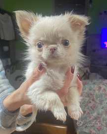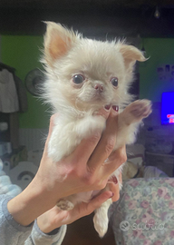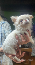 Disponibile dal prossimo fine settimana cucciolo maschio chihuahua bianco pl di 95 giorni taglia mini mini, genitori visibili di mia proprietà. Si cede completamente sverminato e prima vaccinazione abituato alla traversa,ad altri cani anche di taglia grande e gatti. Contatto whatsapp no perditempo